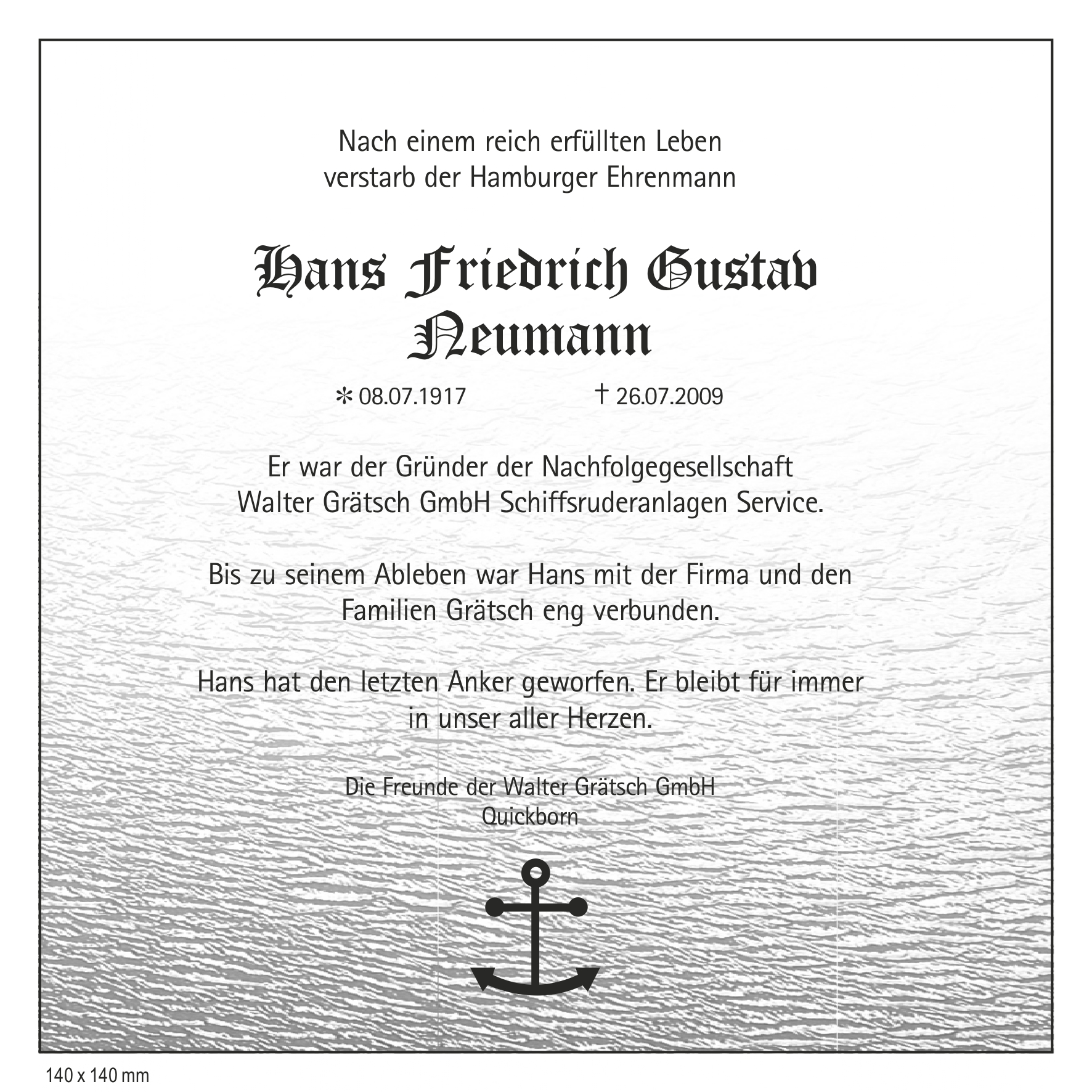 The namesake, Walter Grätsch, died in December at the age of 90. From 1979 to 1991 he managed the ship service as a sole proprietor and later as managing director. He was closely associated with the company until his death.